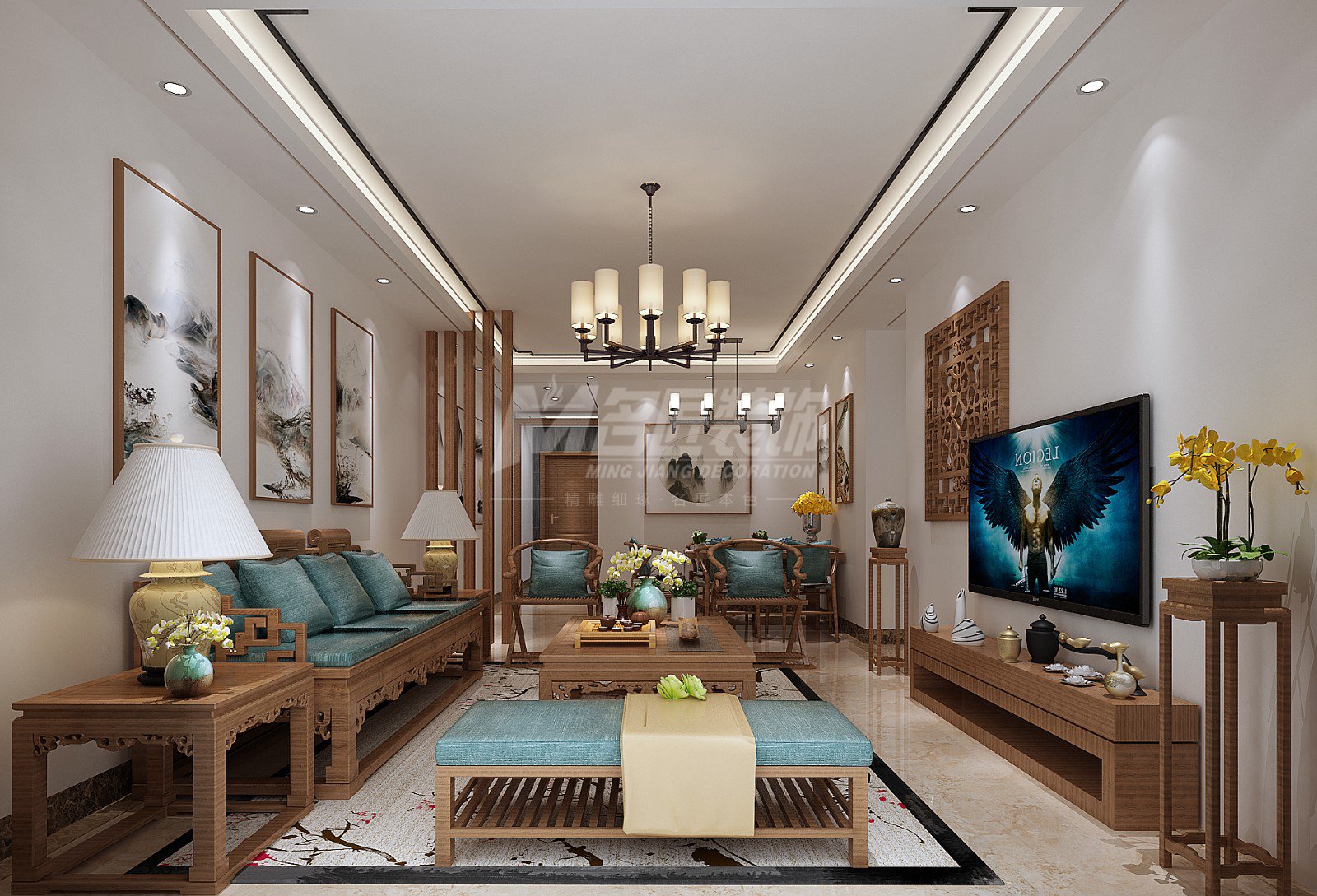 江門101-200平米新中式風(fēng)格雍逸廷裝修設(shè)計(jì)效果圖