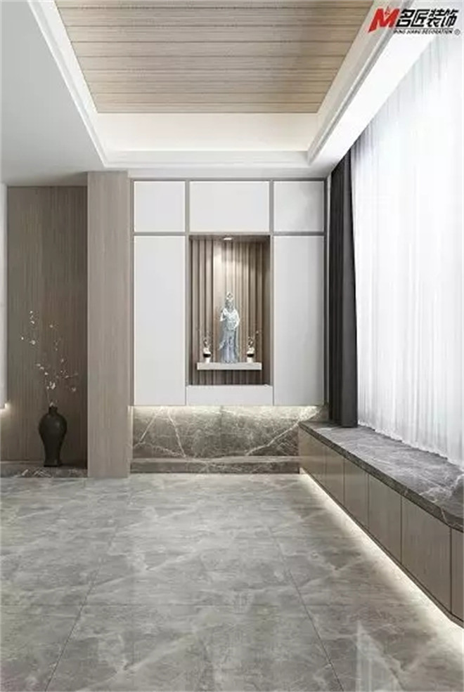 此案例以白色、灰色和原木色系搭配為主線,而奠定了簡約之調(diào)的灰白讓人心生向往,墻上的精致擺件的映襯,仿佛是對生活的簡約及情感信仰的表達(dá)。在細(xì)節(jié)之處出賣了主人雅致品味和淡雅生活方式。