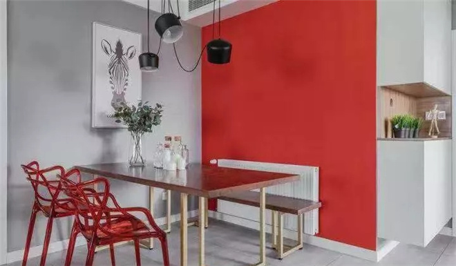 客廳是交友的娛樂(lè)中心??梢钥吹秸w線(xiàn)條簡(jiǎn)約流暢,點(diǎn)綴色彩對(duì)比強(qiáng)烈!客廳的影視墻采用的是淺色乳膠漆打底,既大方又很有氣派。喜歡北歐風(fēng)格,但又不希望被單調(diào)的白色拘束,設(shè)計(jì)師最終給了小夫妻驚喜。