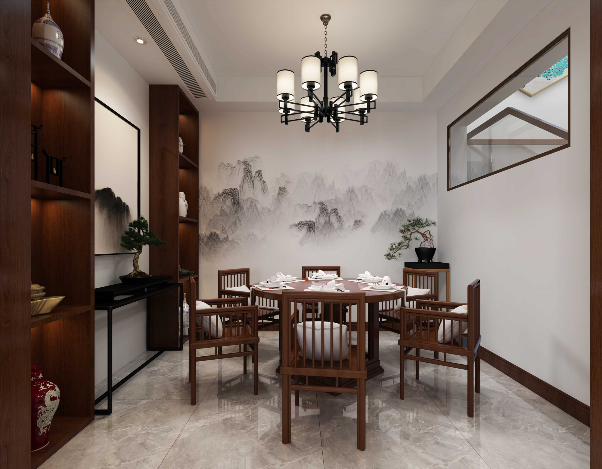 惠州201-300平米新中式風(fēng)格景安花園家裝設(shè)計(jì)效果圖