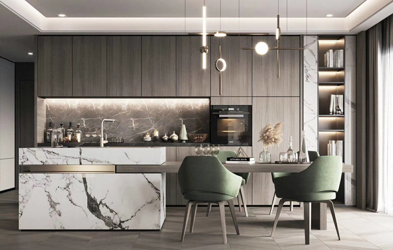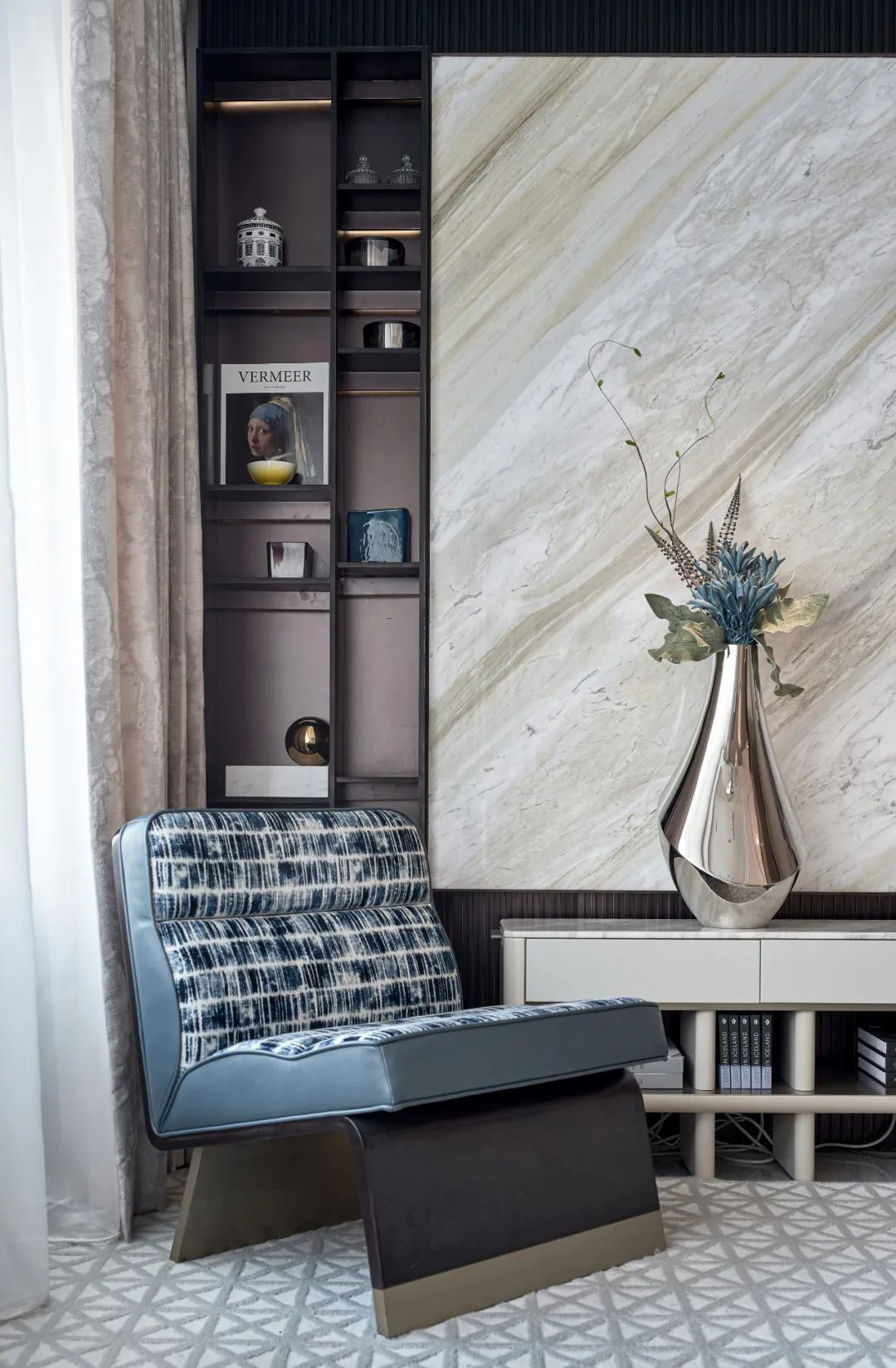 長夜?jié)u晚,柔和燈光下閱讀一本書,享受獨處的時光。飽含詩意,囊括情感上的共鳴與空間所具備的舒適度,并相得益彰,營造出靜謐的藝術氛圍,從功能上提供舒適的生活環(huán)境,現代美學于寧靜中優(yōu)雅盛放。