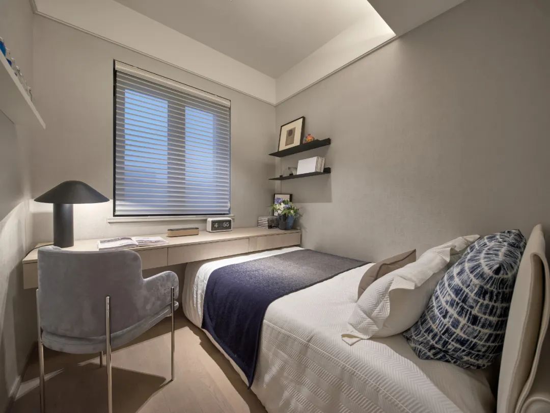 臥室擁有強大的衣帽收納柜,使空間保持著天然的雅致氣質,美好的一天從衣柜的穿搭開始,輕奢淡雅的氣息在空間中久久回蕩。