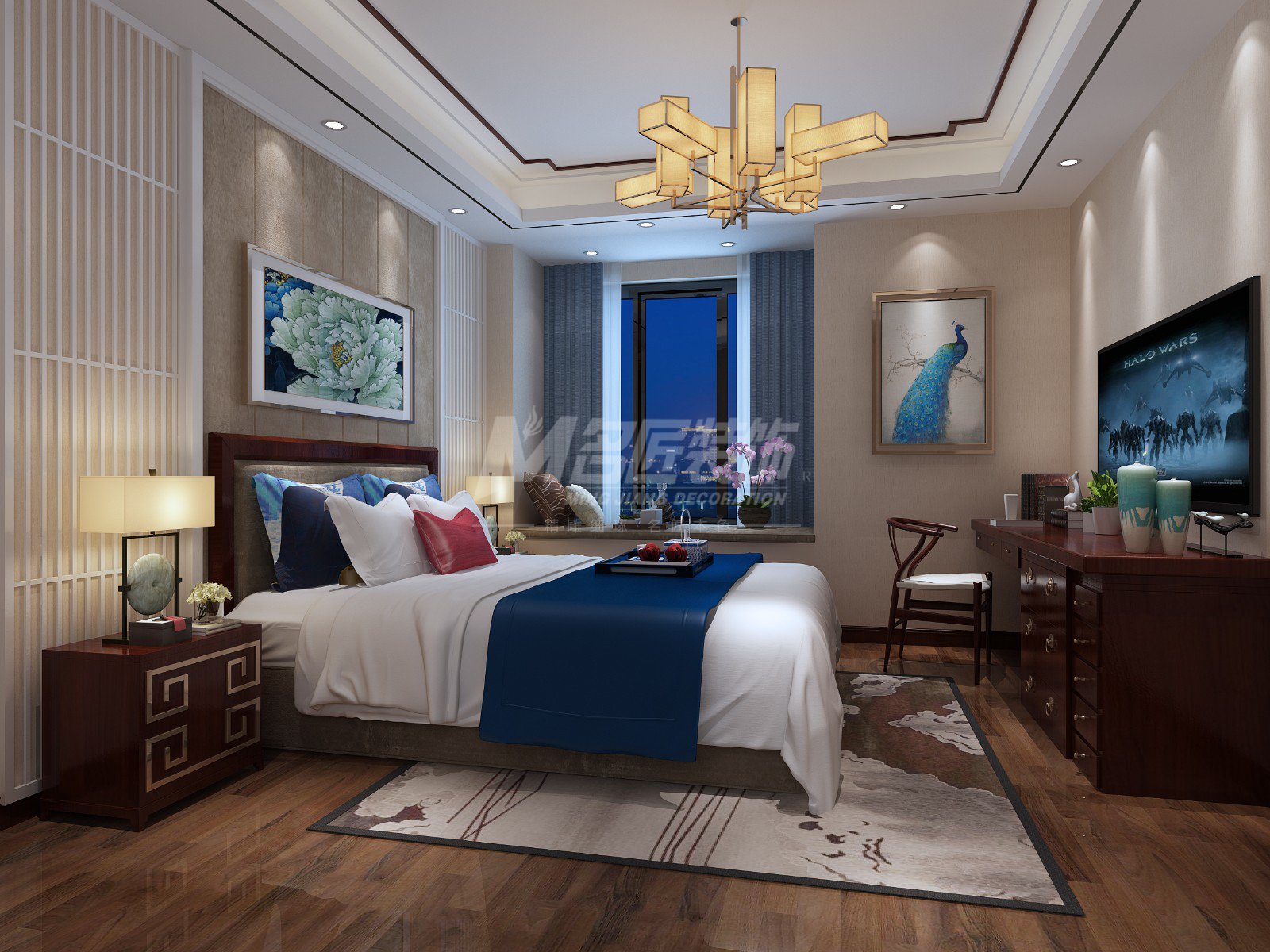 黔西南布依族苗族自治州濱海悅城三居新中式風(fēng)格裝修效果圖