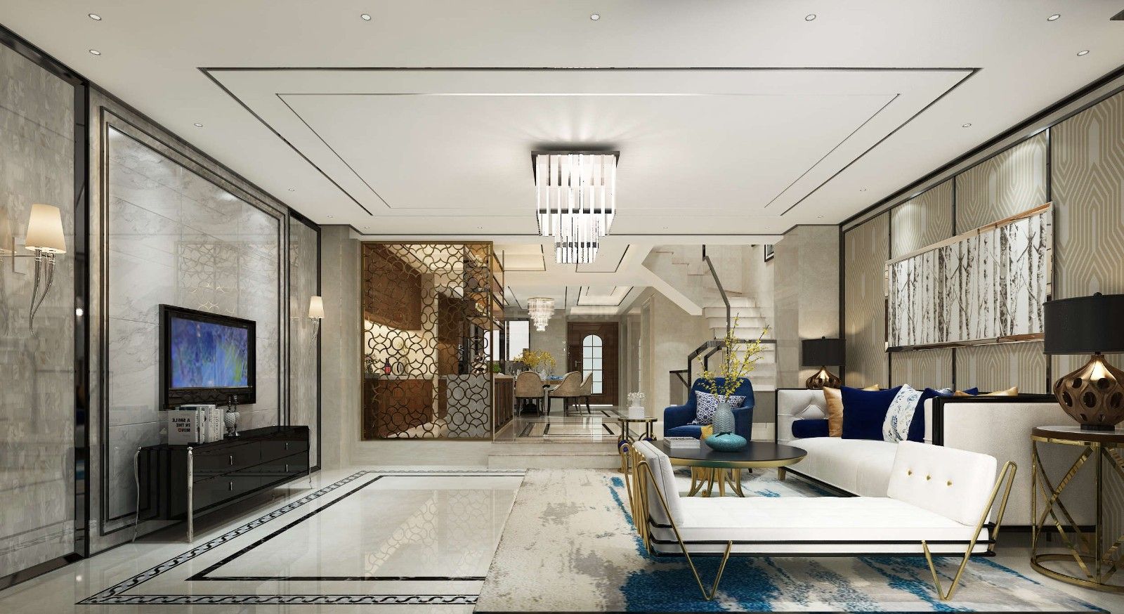 泉州陽(yáng)光城翡翠灣別墅輕奢風(fēng)格裝修效果圖