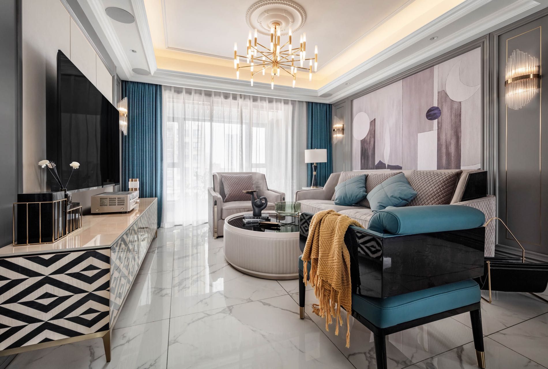 文山壯族苗族自治州101-200平米美式風格中天名郡裝修設計效果圖