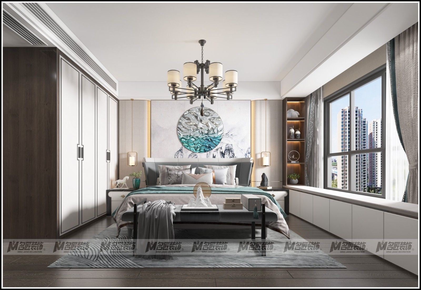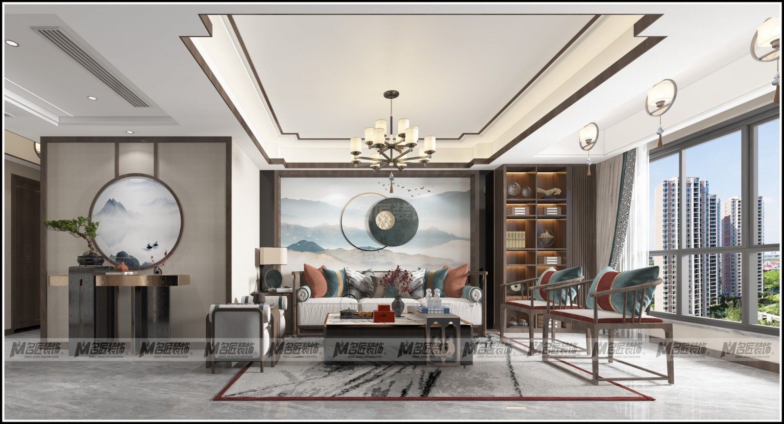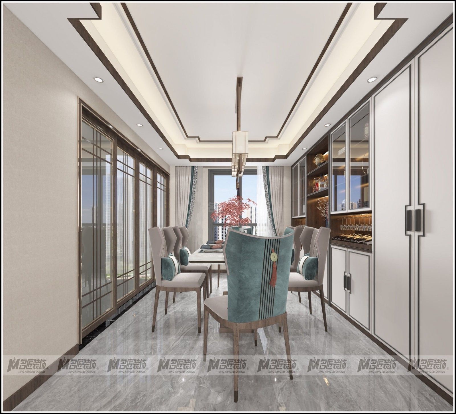 湖州臥龍莊園四居新中式風(fēng)格裝修效果圖