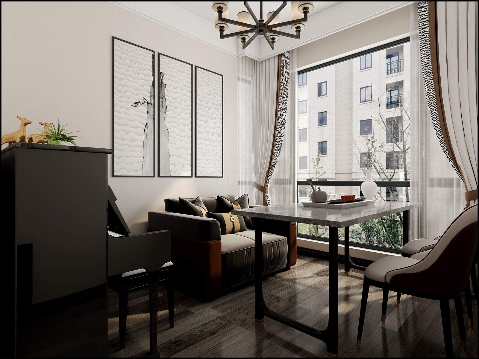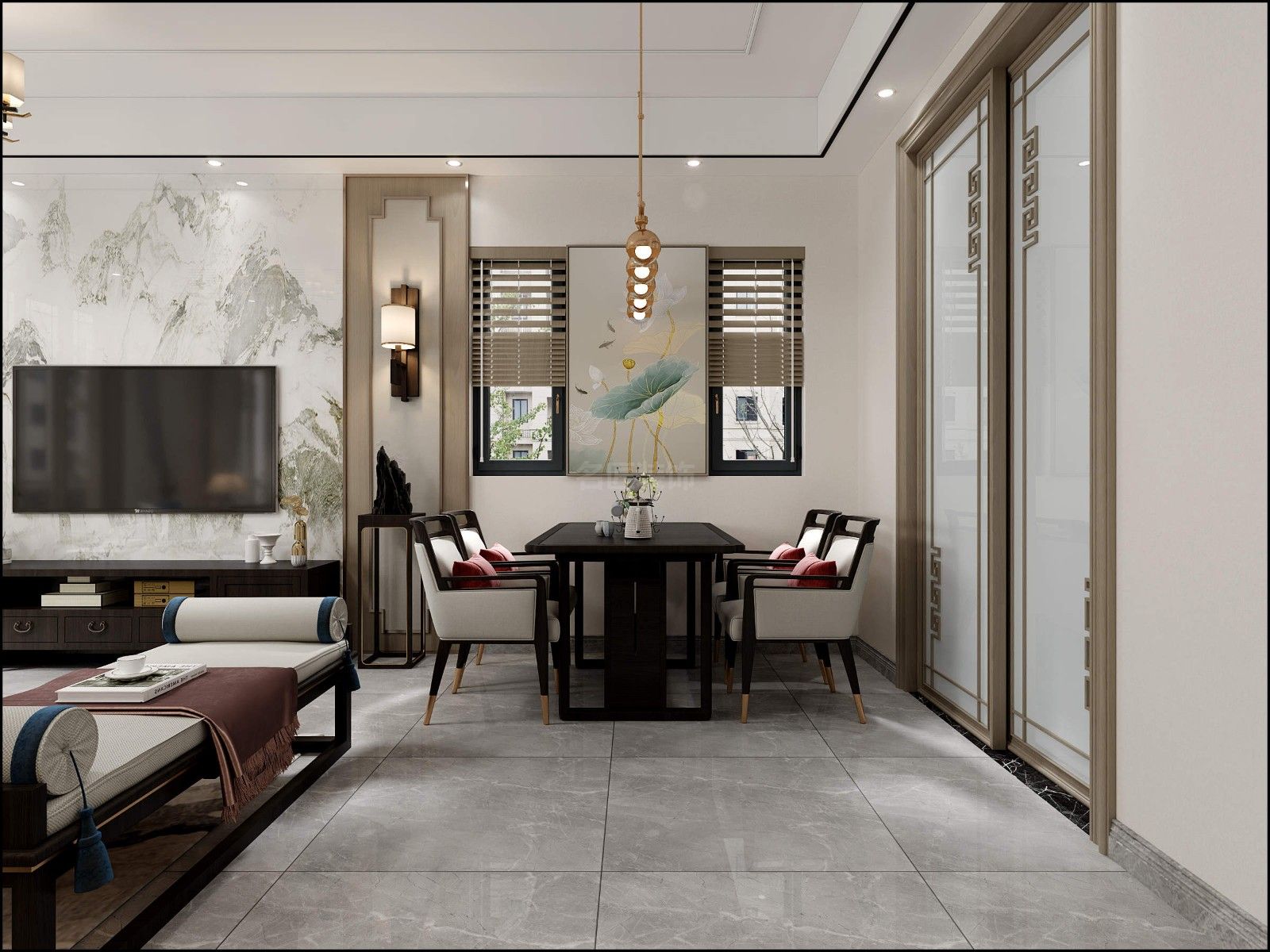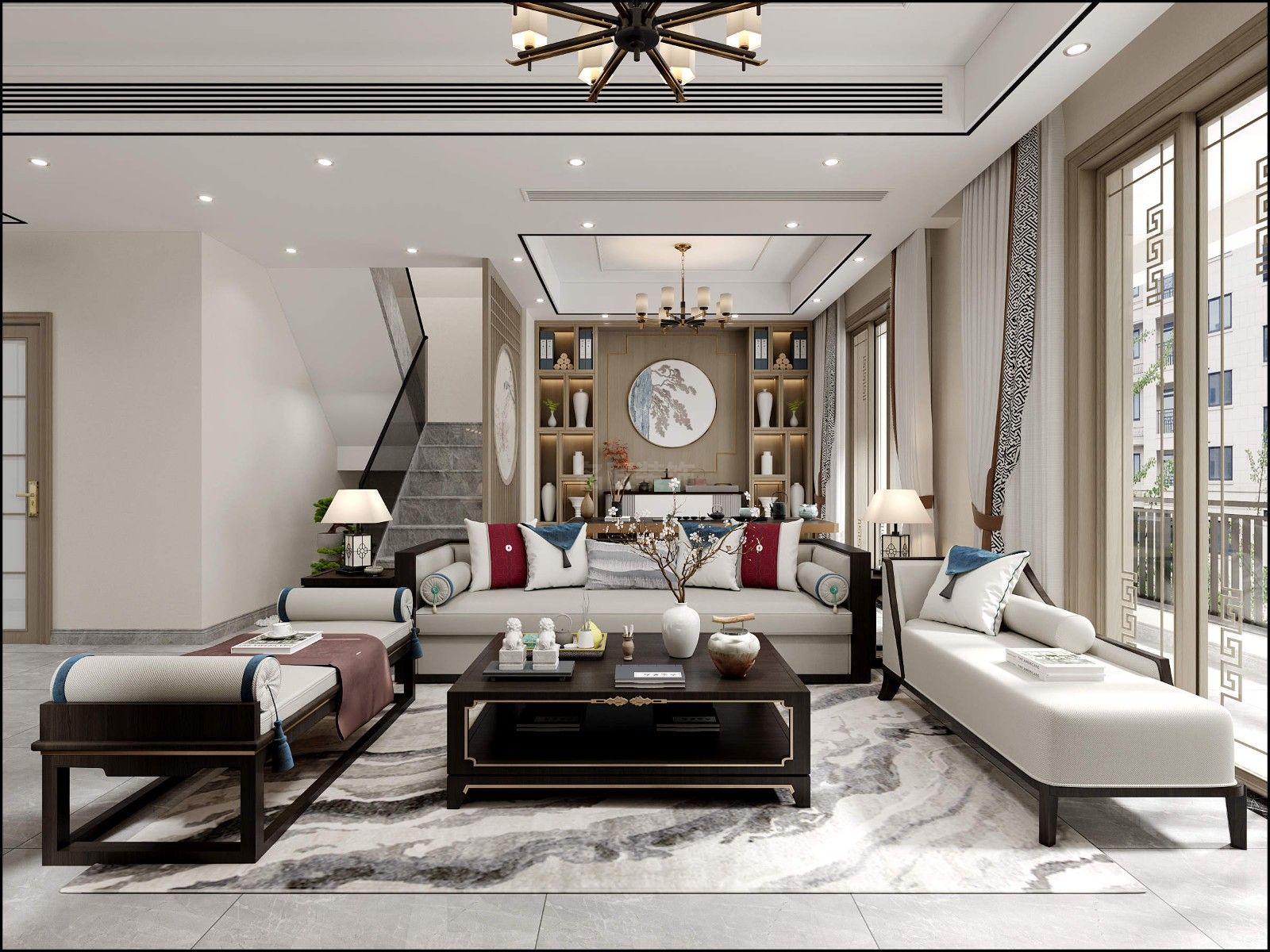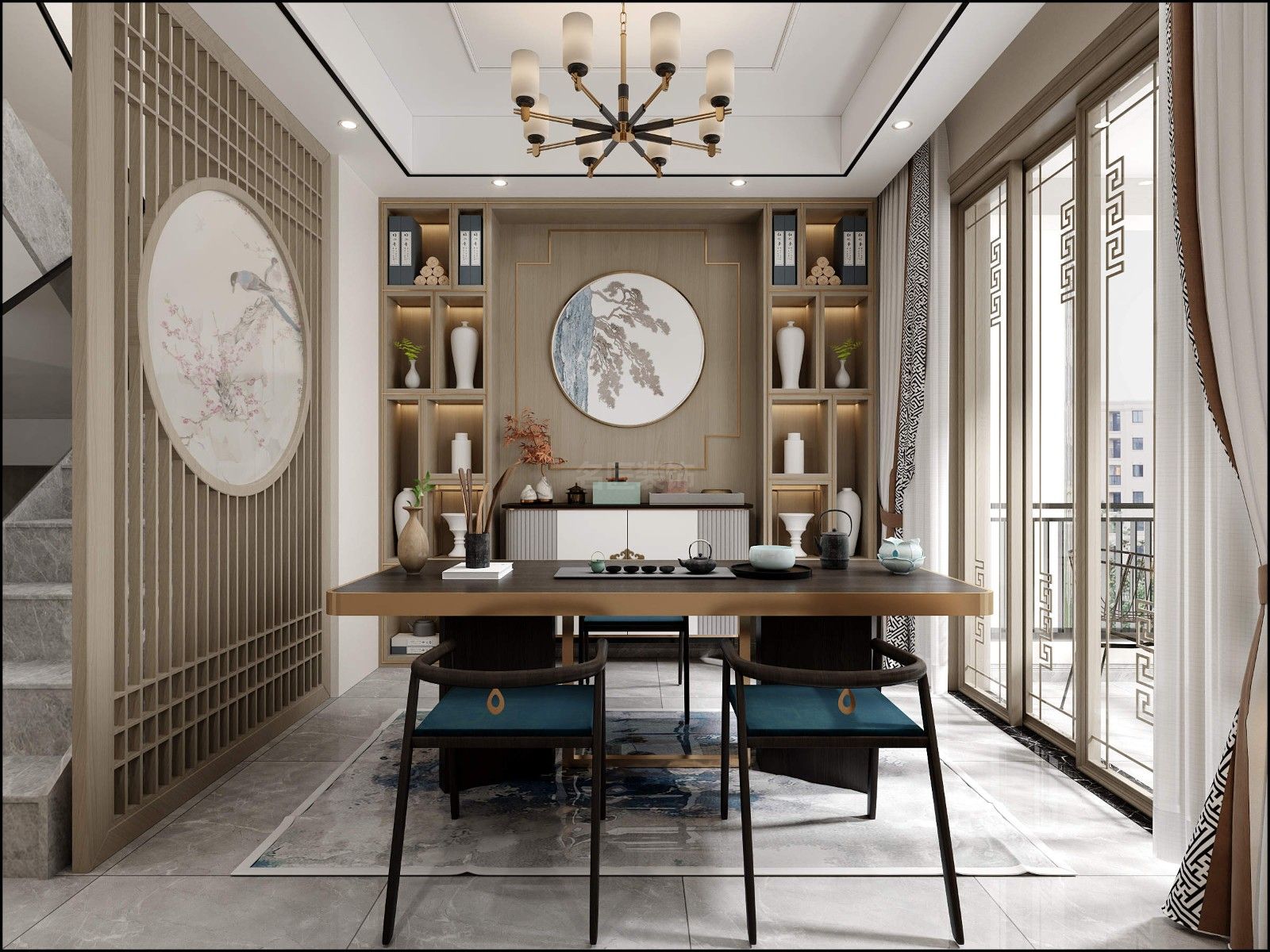 佛山金科博翠天下疊墅別墅新中式風(fēng)格裝修效果圖