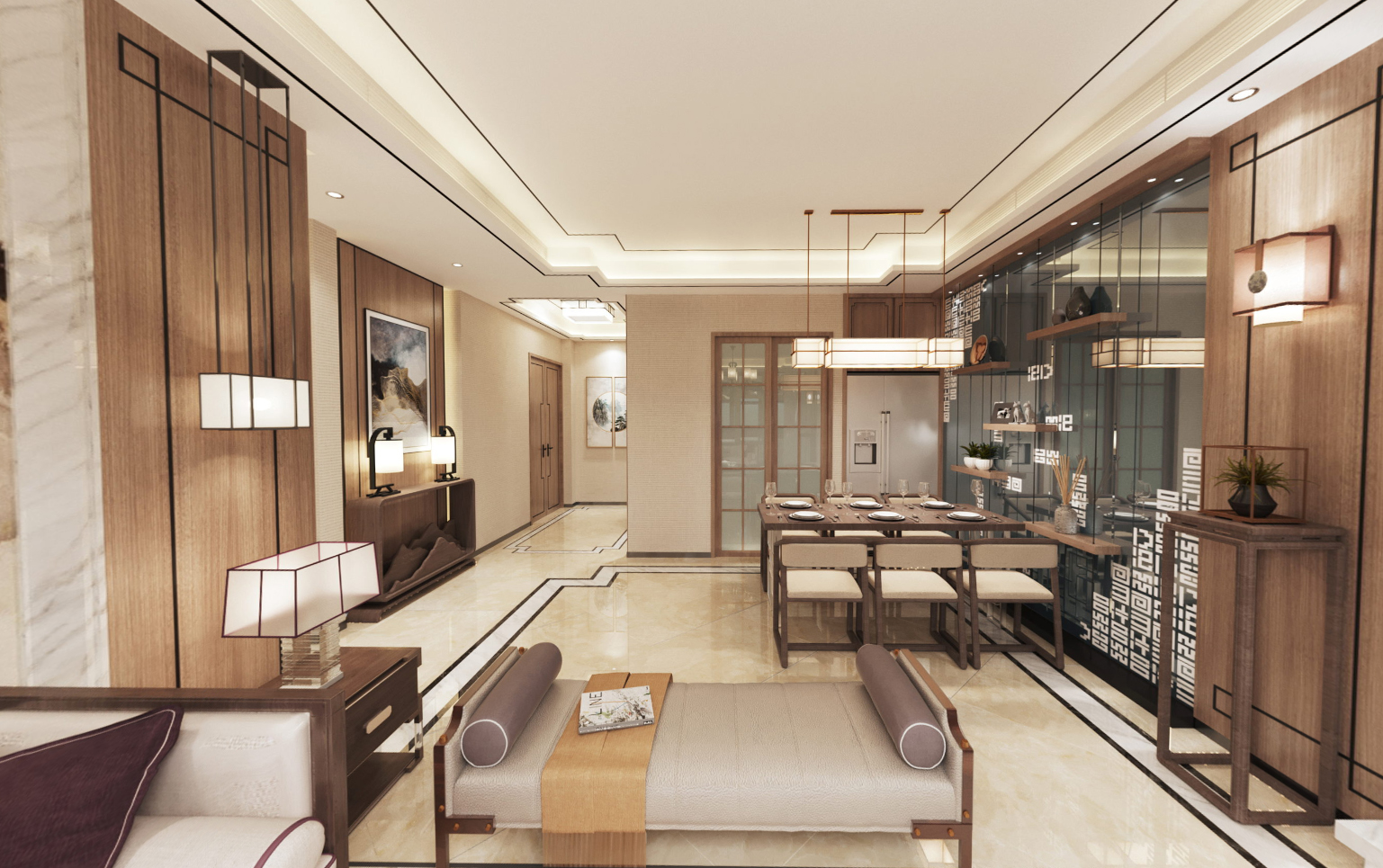 廣州101-200平米新中式風格室內(nèi)設計效果圖