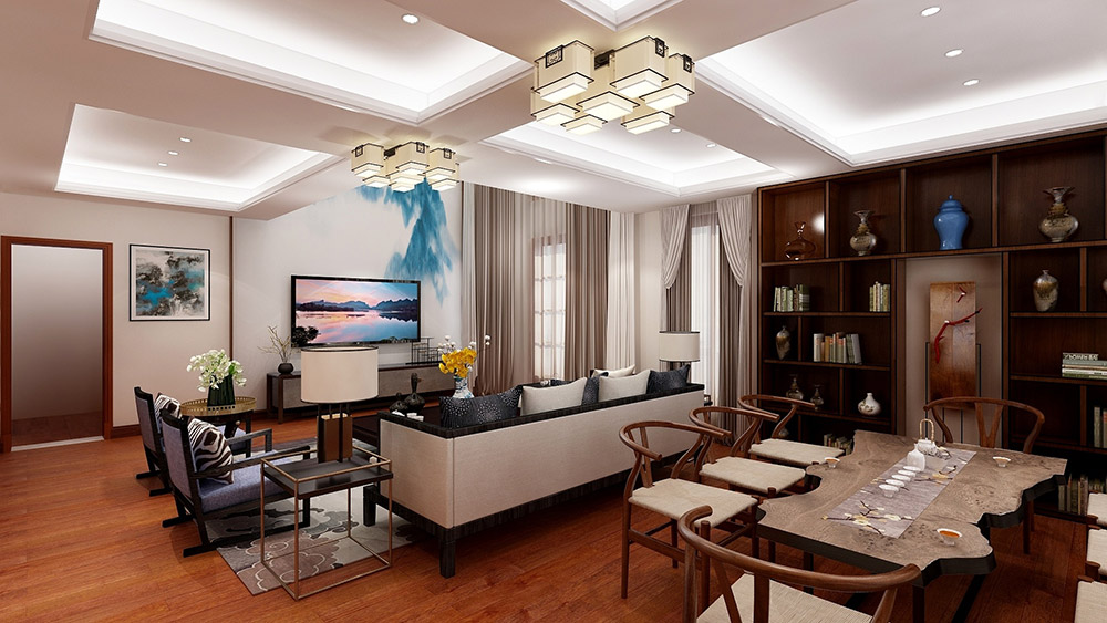大理白族自治州左岸高地別墅新中式風(fēng)格裝修效果圖
