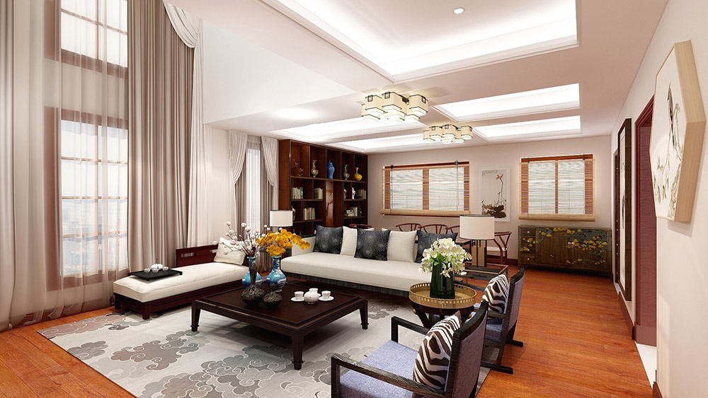 中山101-200平米新中式風(fēng)格國(guó)韻飄香家裝設(shè)計(jì)效果圖